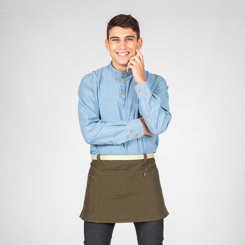 Este mandil está disponible en una amplia gama de colores, incluyendo albero, gris, rojo, verde caqui o gris marengo. Esto le brinda la flexibilidad de elegir el tono que mejor se adapte a su gusto personal y que se integre perfectamente con la estética de su negocio.