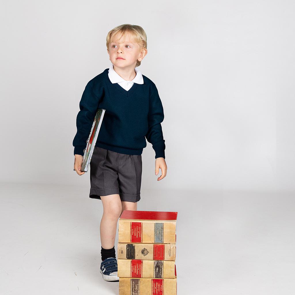 Información del ProductoJersey infantil unisex con cuello de pico. Confeccionado en punto acrílico de color burdeos, marino o verde botella.... Leer más...