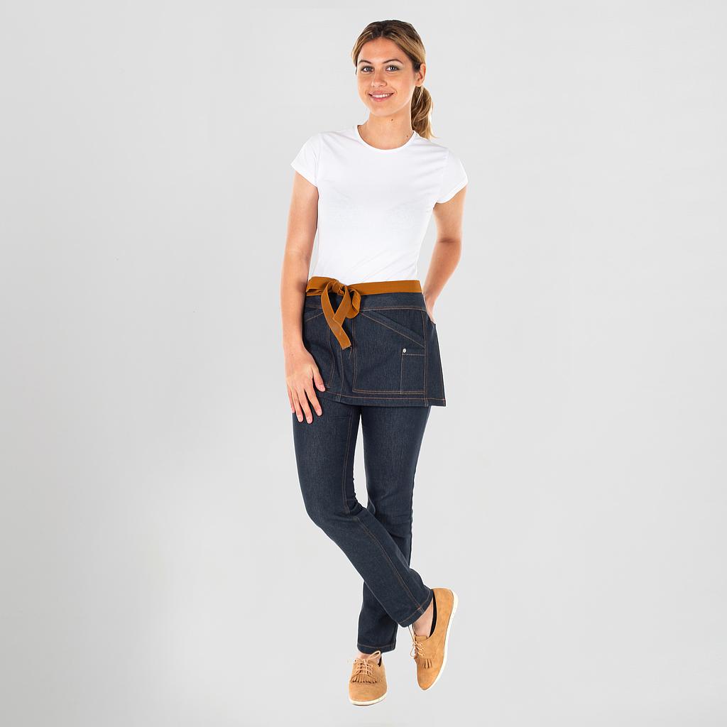 Diseñado para destacar en sectores como hostelería, restauración, barberías y comercio, el Delantal Corto Sahara combina estilo moderno con la durabilidad del tejido vaquero. Las tiras de ajuste aparte, con la referencia 330500, permiten personalizar el ajuste según tus preferencias.