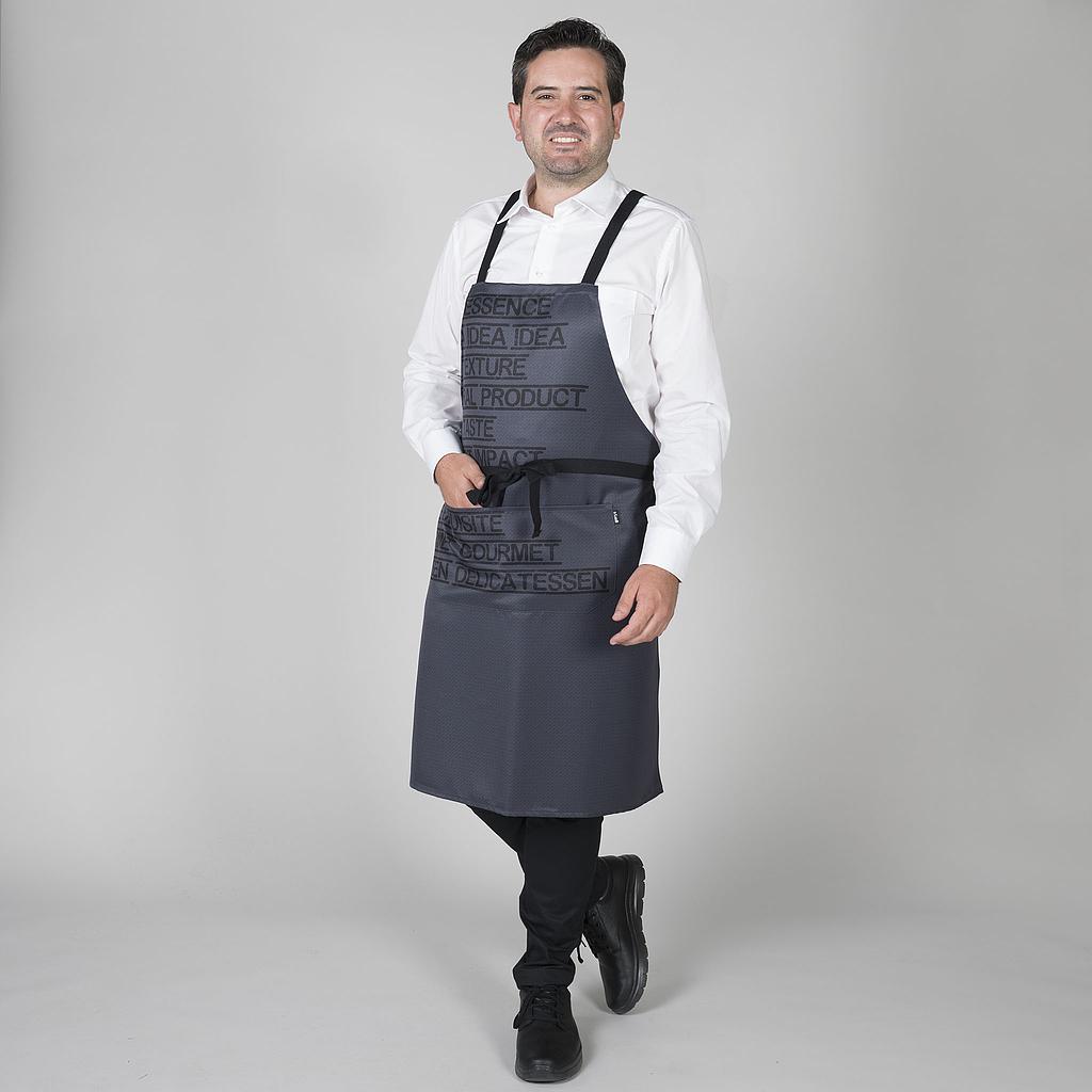 Sumérgete en la elegancia culinaria con nuestro Delantal con Peto Gourmet Estampado de 92x75 centímetros, una obra maestra de estilo y funcionalidad diseñada para destacar en la hostelería y el comercio. Este delantal largo de peto presenta un estampado gourmet sublimado en diferentes tonos, añadiendo un toque artístico y distintivo a la indumentaria laboral.
