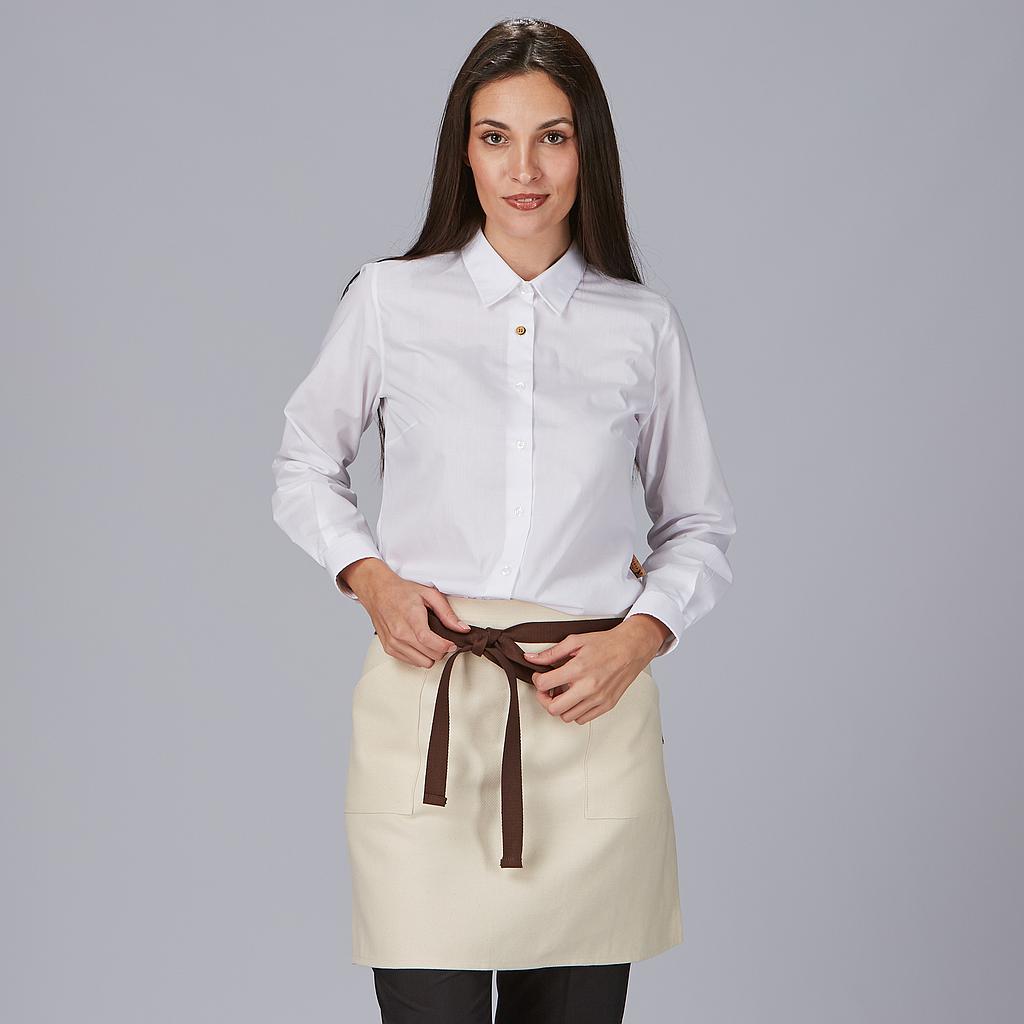 Este mandil corto es una elección consciente para profesionales de la hostelería, restaurantes y cafeterías que valoran la calidad y desean contribuir a la sostenibilidad. Los dos bolsillos delanteros añaden practicidad a su diseño, ofreciendo espacio adicional para utensilios esenciales y objetos personales.