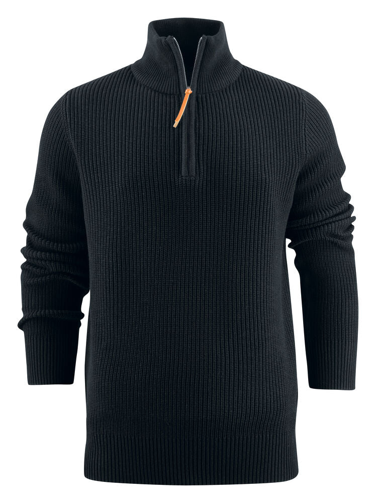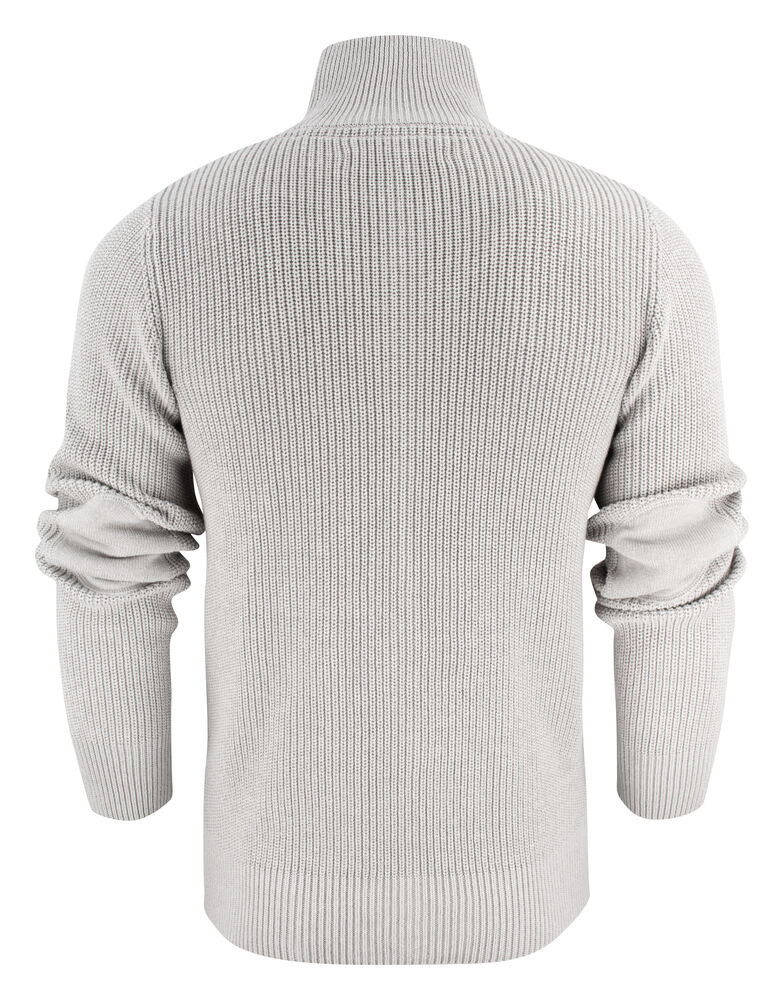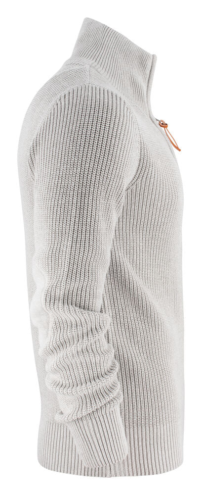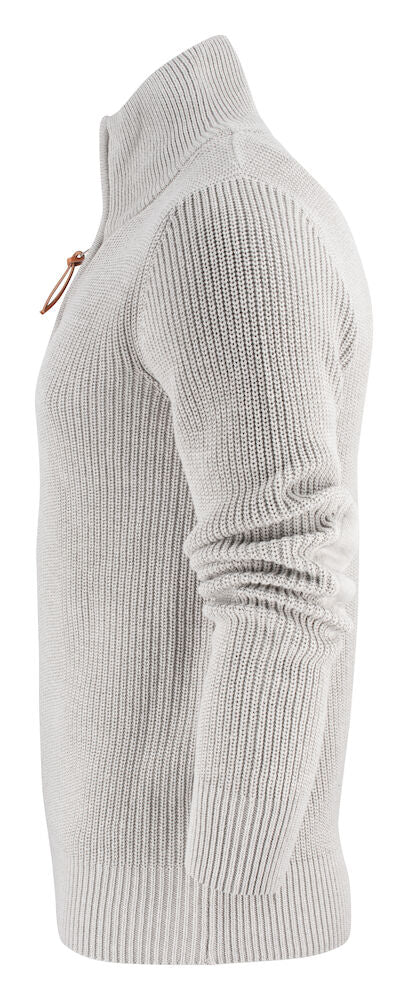 Suéter ½ cremallera. Cremallera metal con tirador con look de piel. Patch en codos. Canalé en cintura, puños y cuello (doble capa).