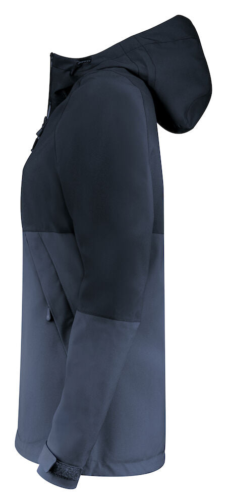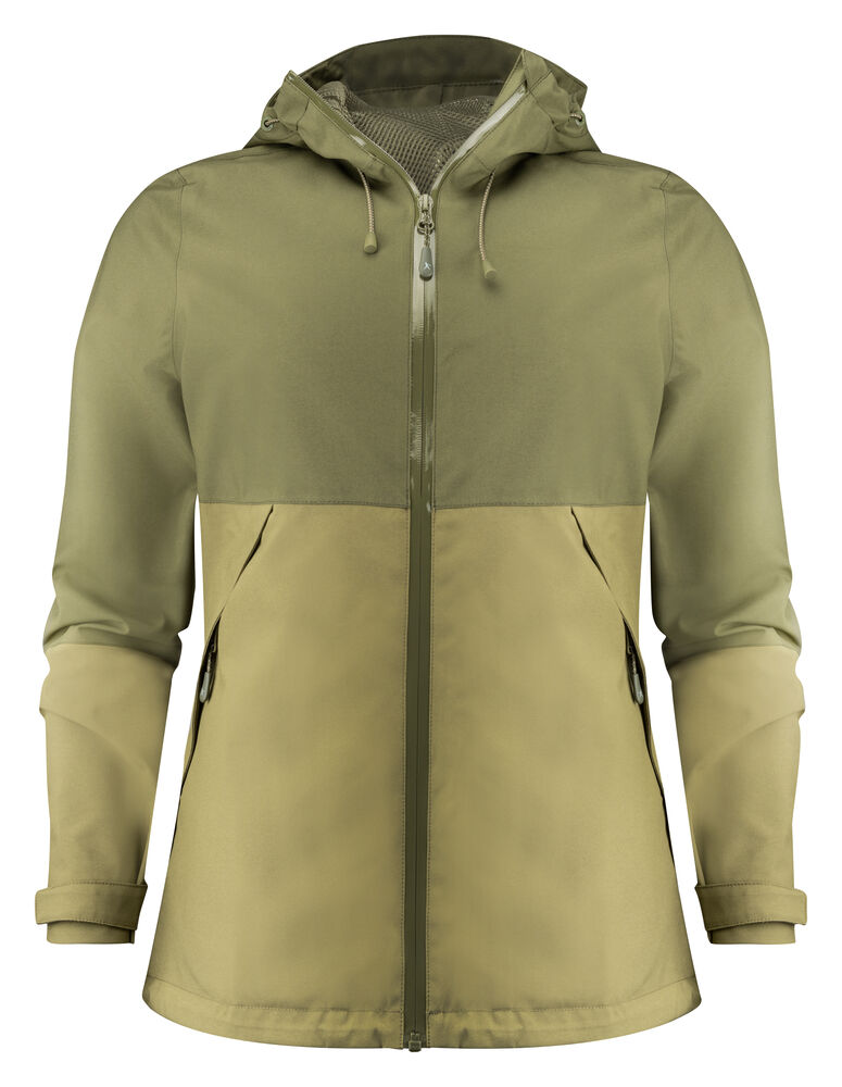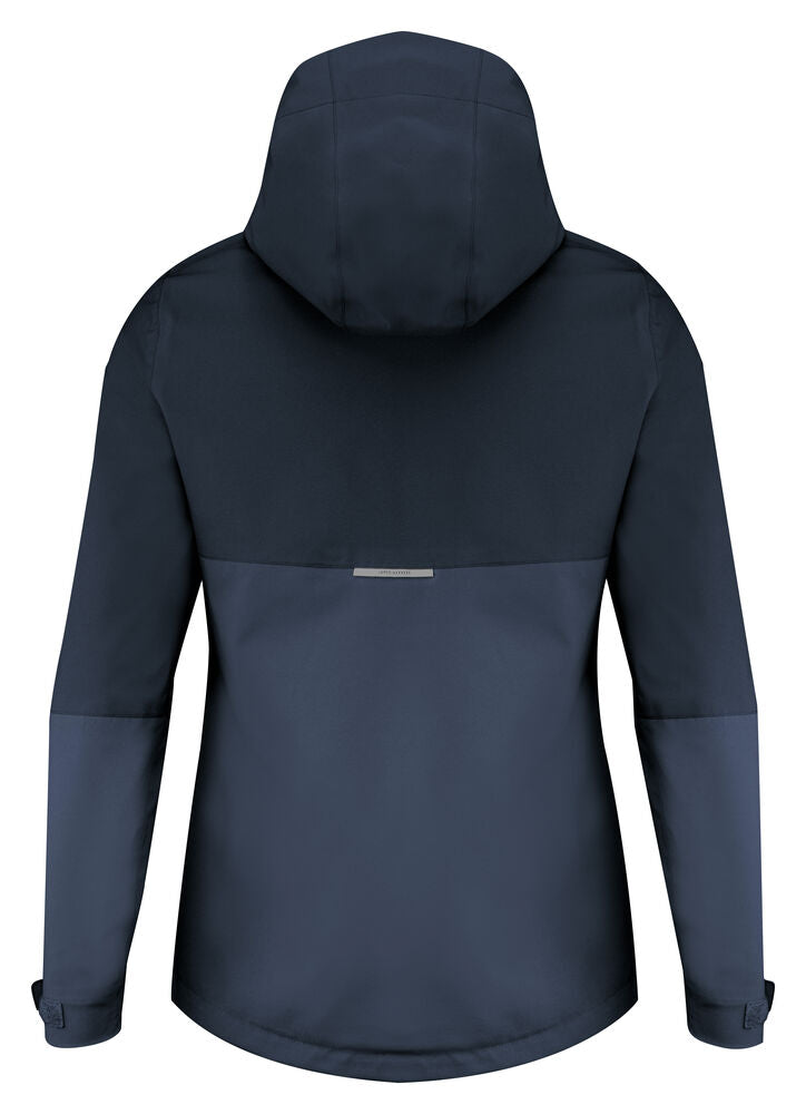Chaqueta funcional a dos tonos con costuras selladas. Cremallera frontal resistente al agua. Mangas ajustables con Velcro. Forro de malla en bolsillo interno y cremallera bordada.. Detalle reflectante en espalda. Capucha y cintura ajustable con cordón elástico. Acabado BIONIC-FINISH® ECO.