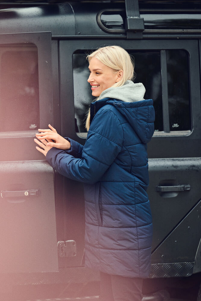 Información del ProductoChaqueta larga acolchada de mujer con cremallera bidireccional. Capucha desmontable ajustable con cordones elásticos. Canalé en cuello y... Leer más...