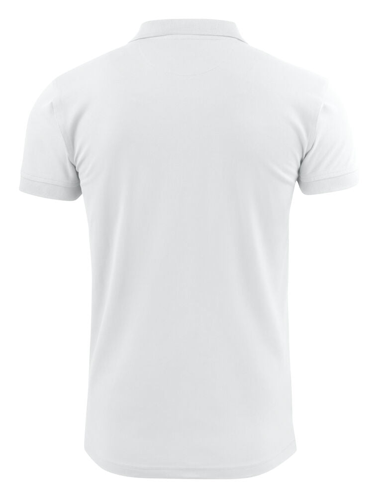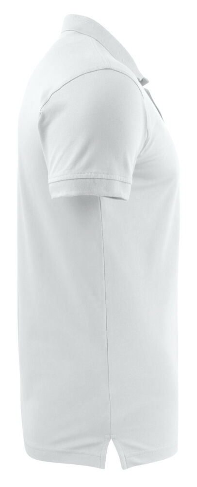 Polo piqué elástico con tres botones en la versión masculina y cuatro en la femenina. Tapeta y aberturas laterales. Oeko-tex.