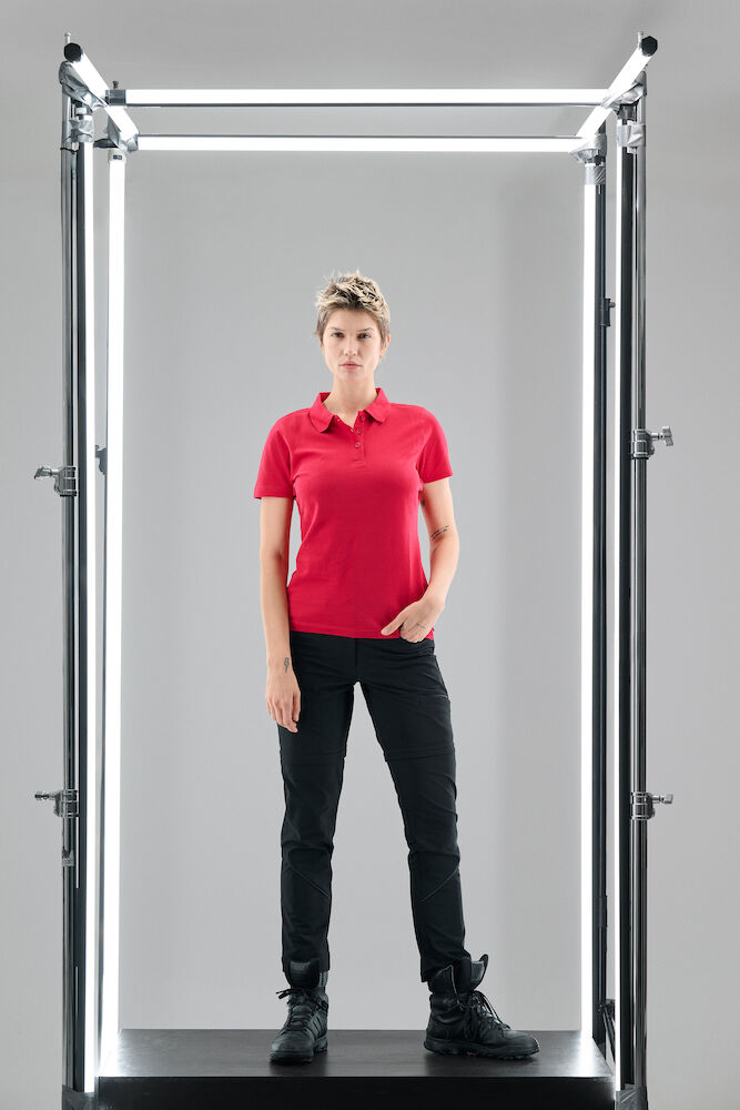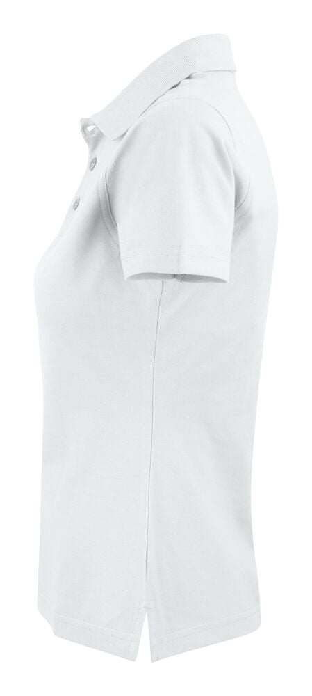 Polo piqué con tres botones, tapacosturas en cuello y aberturas laterales.