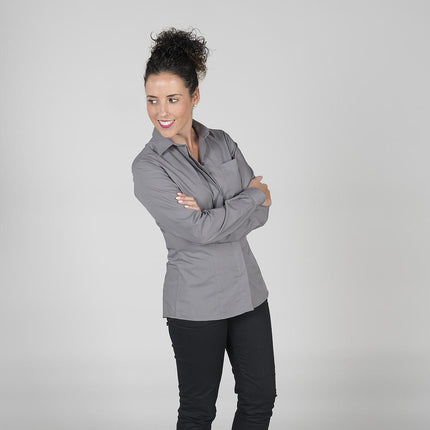 La BLUSA MUJER BOTÓN OCULTO M/L combina estilo y funcionalidad, siendo una elección excepcional para profesionales de la hostelería y restauración. Confeccionada con manga larga, esta camisa presenta una tapeta que oculta los botones, brindando una apariencia elegante y pulcra.