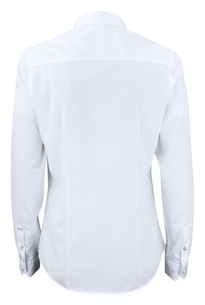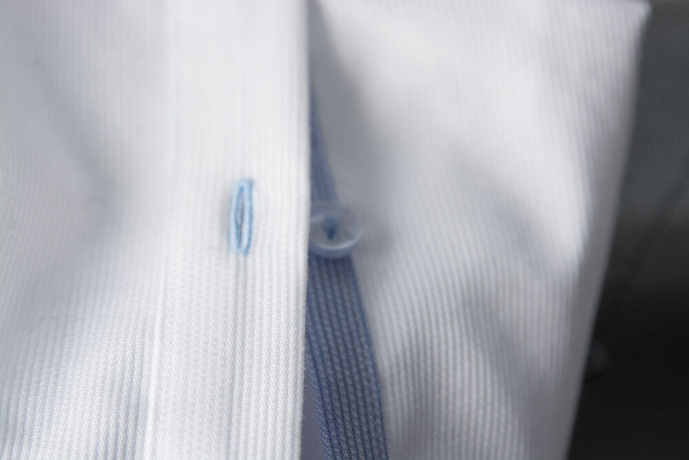 100% Algodón compacto de 2 capas de fibra larga, 130 g/m², estructura Mircro-cord bedford. Lavable a máquina. Tratamiento Non-Iron. Costuras principales selladas. Manga larga. Puño de ángel sencillo, con ojal adicional para gemelos. Botones de 4 mm de grosor.