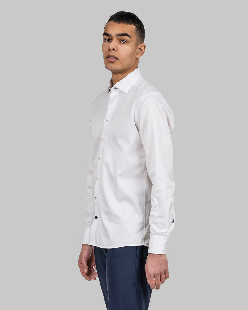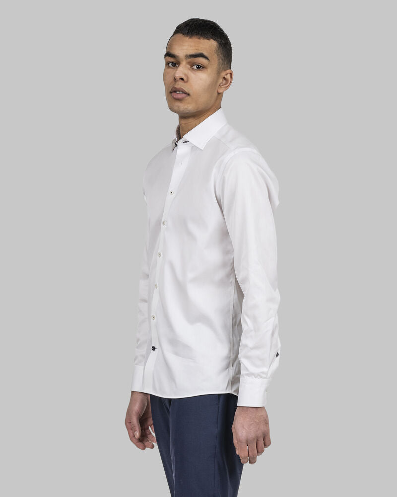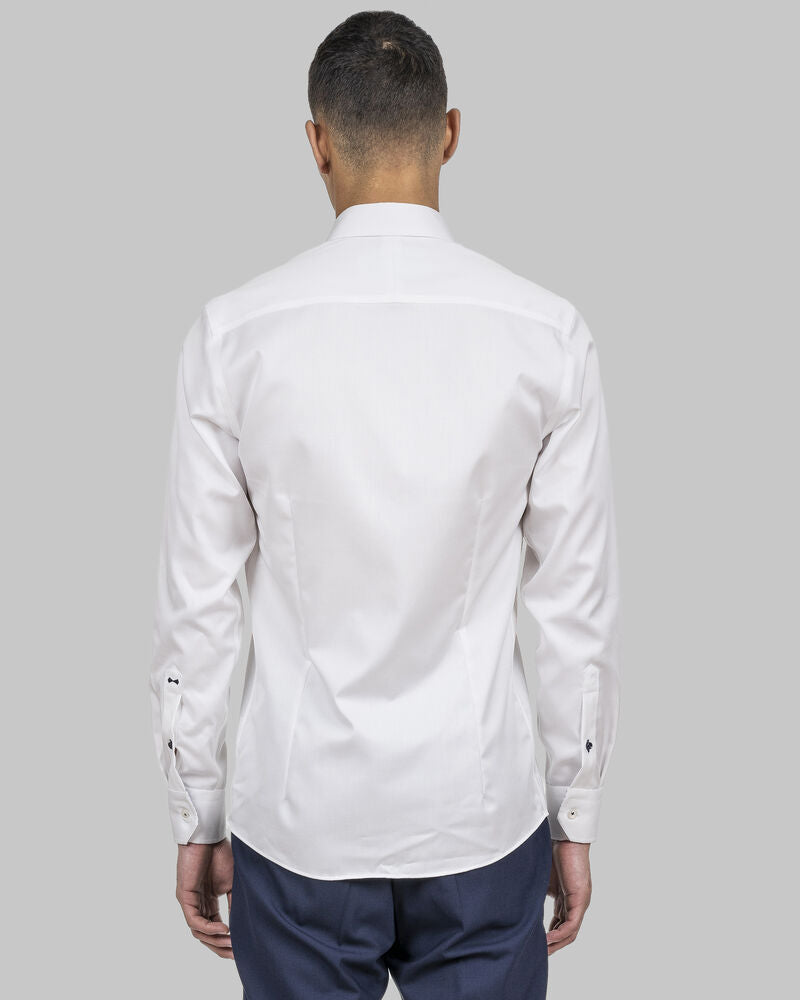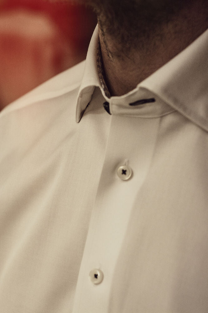 Muchas de nuestras camisas han tenido tiempo de convertirse en auténticos clásicos. Red Bow 122 es una nueva expresión de nuestra clásica camisa de contraste "Red Bow 20". Modelo infalible con detalles modernos y el cuello abotonado oculto adicional que tanto gusta.