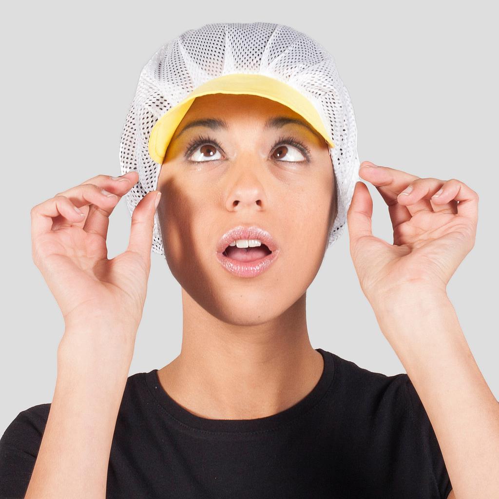 La redecilla presenta una visera semi rígida disponible en 17 vibrantes colores, lo que permite a los usuarios personalizar su look y destacar en su entorno laboral.