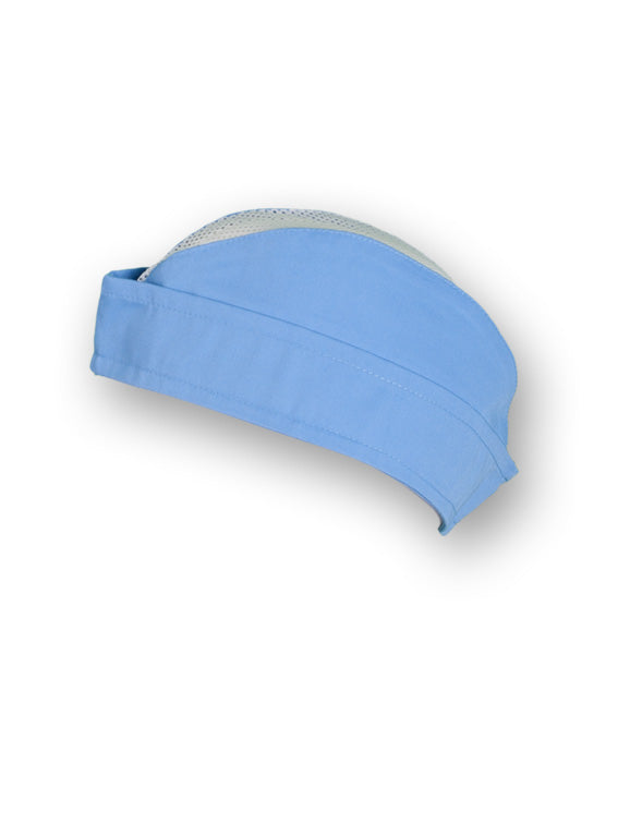 Este gorro clásico tipo barco es unisex y combina una sarga de alta calidad con una rejilla en la parte superior. Esta combinación garantiza una apariencia impecable, una ventilación óptima y protección contra salpicaduras y sustancias no deseadas.