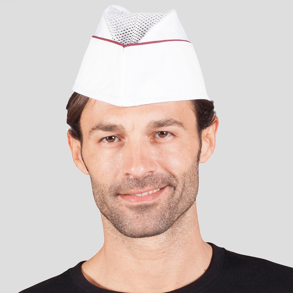 La rejilla blanca en la parte superior del gorro garantiza una ventilación eficaz, evitando que el usuario se sobrecaliente, incluso en las cocinas más activas.
