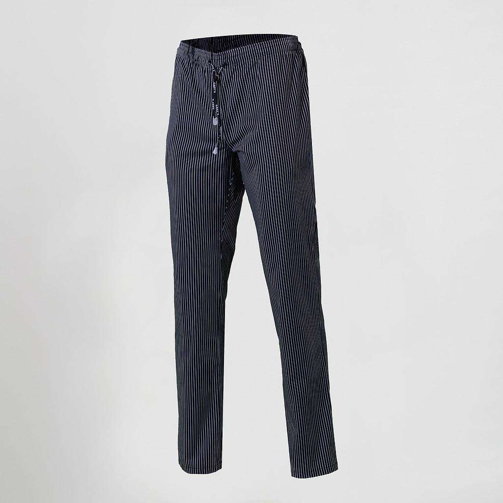 Este pantalón está confeccionado en SARGA de rayas blancas y negras, un tejido 100% algodón de alta calidad que proporciona durabilidad y estilo. El patrón de rayas añade un toque de elegancia y sofisticación a tu uniforme.