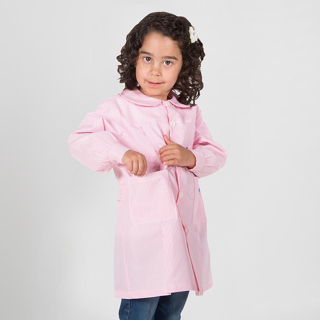 Este babi infantil combina un diseño clásico con detalles funcionales, ofreciendo comodidad y estilo para los más pequeños. Cuenta con mangas largas y cierre frontal con botones, asegurando un aspecto cuidado y profesional.