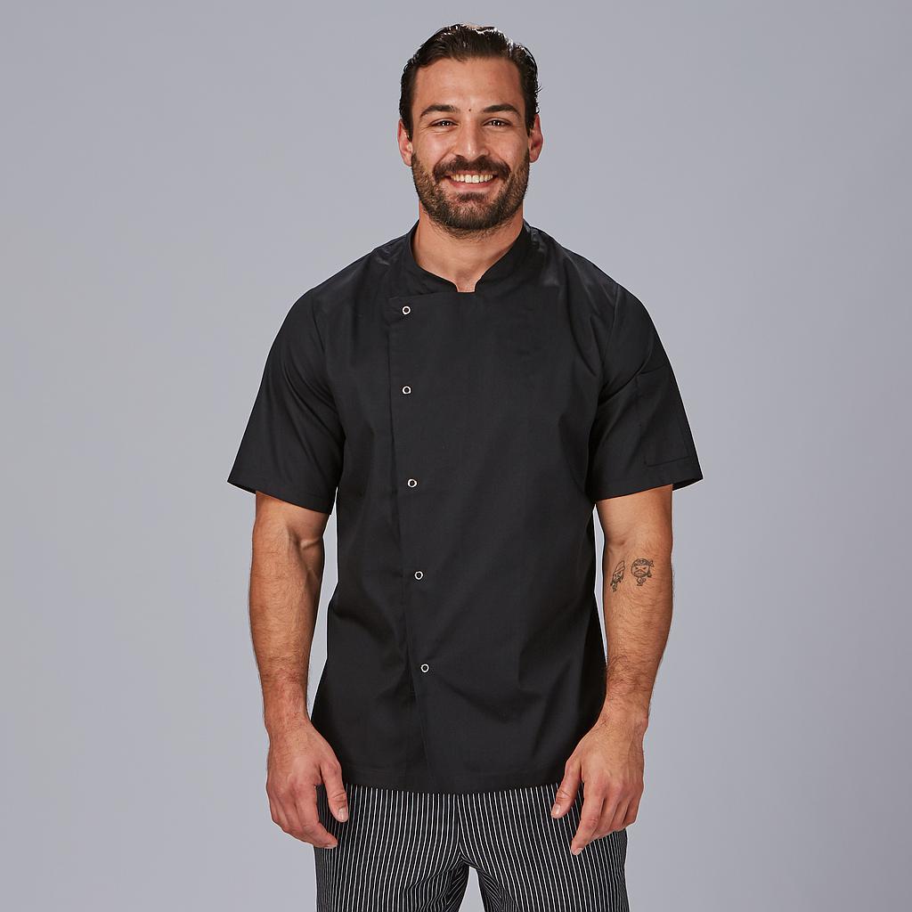 La chaqueta de cocina unisex LUQUE se presenta en una versión de manga corta que proporciona un aspecto fresco y cómodo para los días calurosos en la cocina o en el comedor. Esta versatilidad permite a los profesionales de la hostelería adaptar su uniforme a las condiciones climáticas.