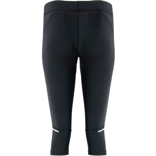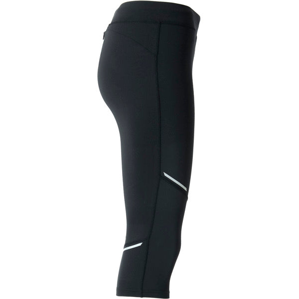 Malla deportiva de mujer a media pierna. Cinturilla elástica y cordón interior cruzado para facilitar el ajuste. Detalles reflectantes. Bolsillo exterior trasero con cremallera.