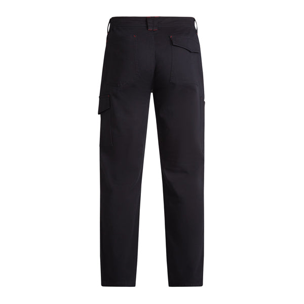 Pantalón largo de hombre grueso con elastano. · Cintura ajustable elástica en laterales. · Tejido cómodo y resistente. · Costuras reforzadas en la entrepierna interior y laterales con triple aguja. · Remate de costuras a contraste. · Dos bolsillos frontales y bolsillo portamonedas. · Dos bolsillos funcionales traseros. · El derecho con tapeta y cierre de velcro. · Dos bolsillos funcionales laterales. El derecho para cúter. El izquierdo con solapa y cierre velcro.
